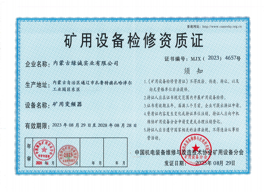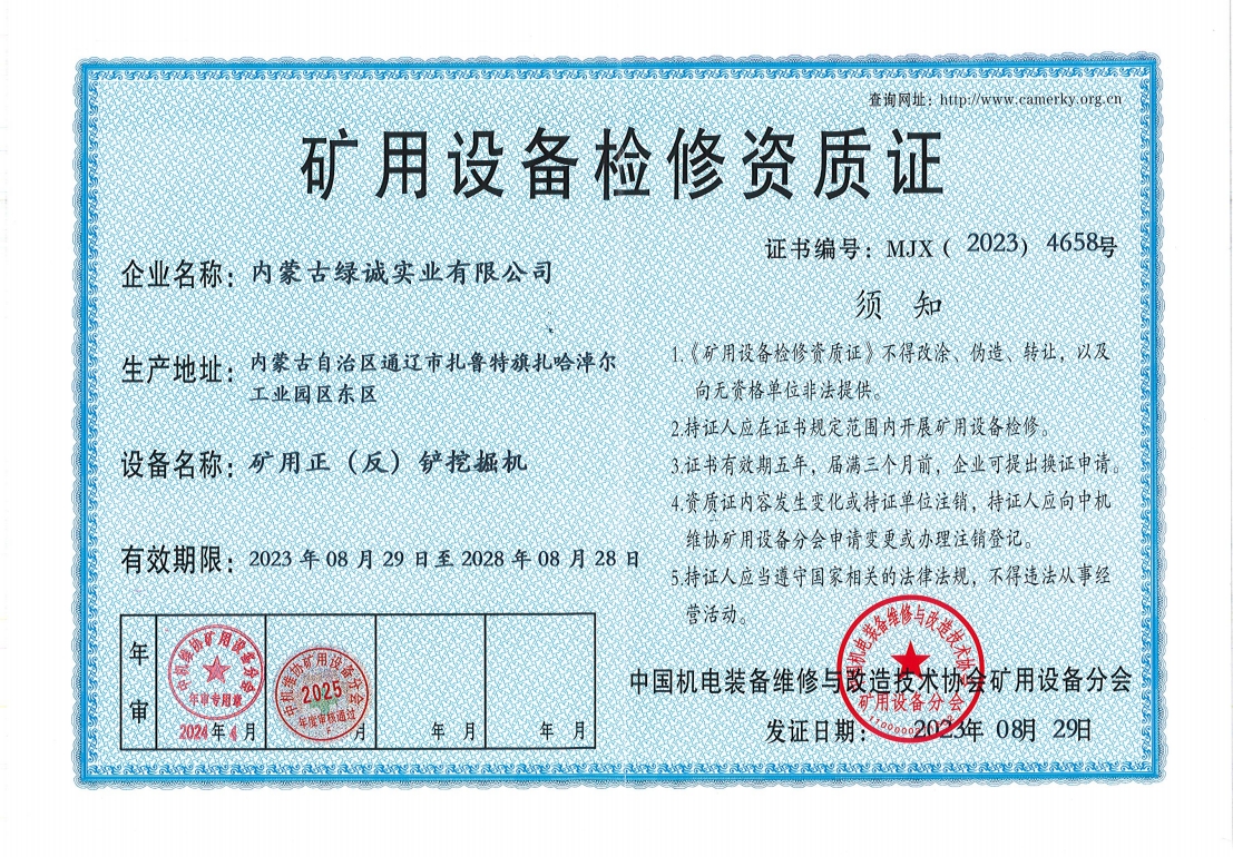 2018年我公司通過中國(guó)機(jī)電裝備維修與改造技術(shù)協(xié)會(huì)礦用設(shè)備分會(huì)審核并取得了9項(xiàng)礦用設(shè)備檢修資質(zhì)證書。公司本著“誠(chéng)信為本 質(zhì)量為先 全心全意為客戶 ”的服務(wù)理念,圓滿完成各個(gè)廠礦的機(jī)械維修及配套服務(wù),期待與您共同合作。